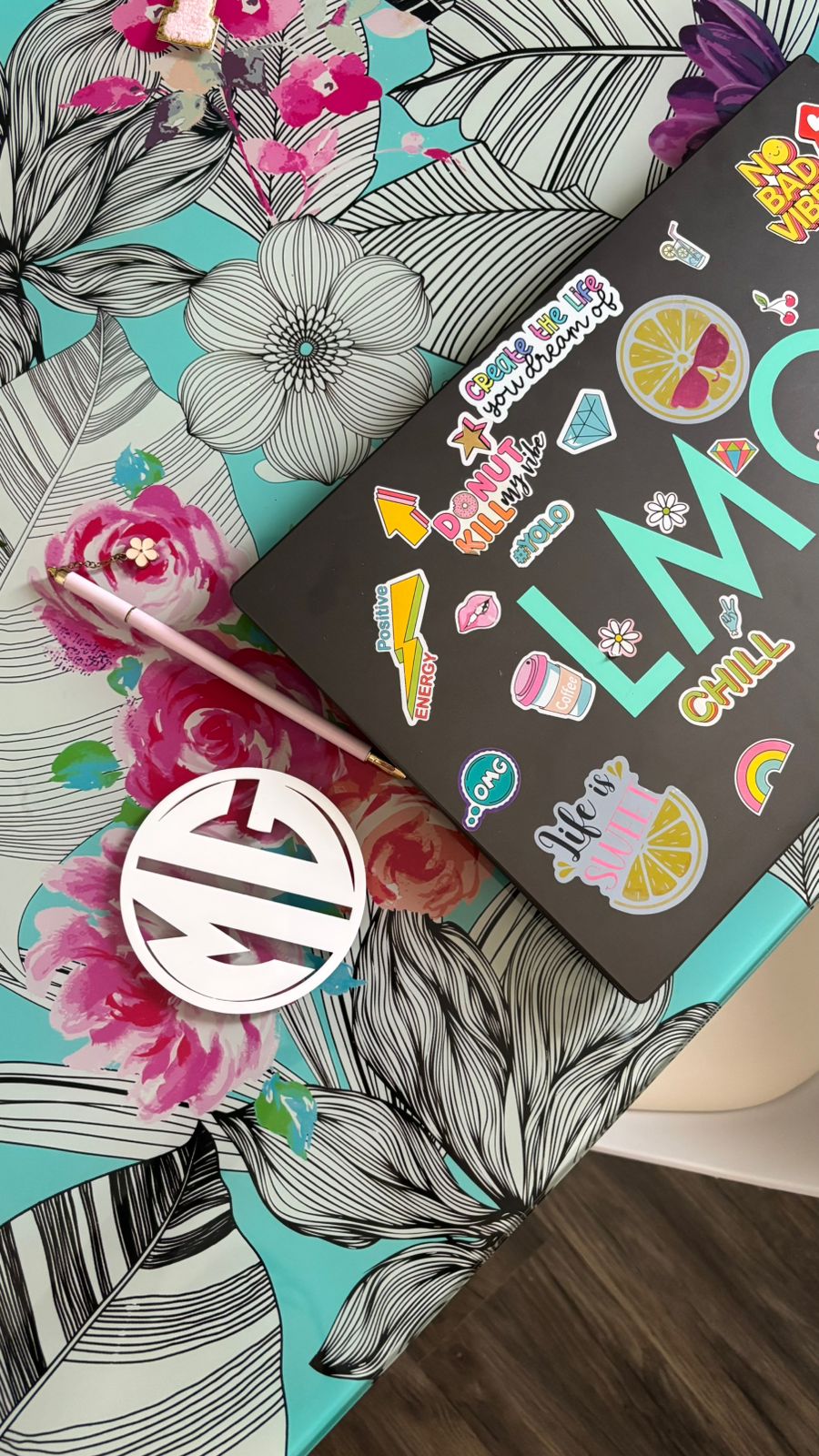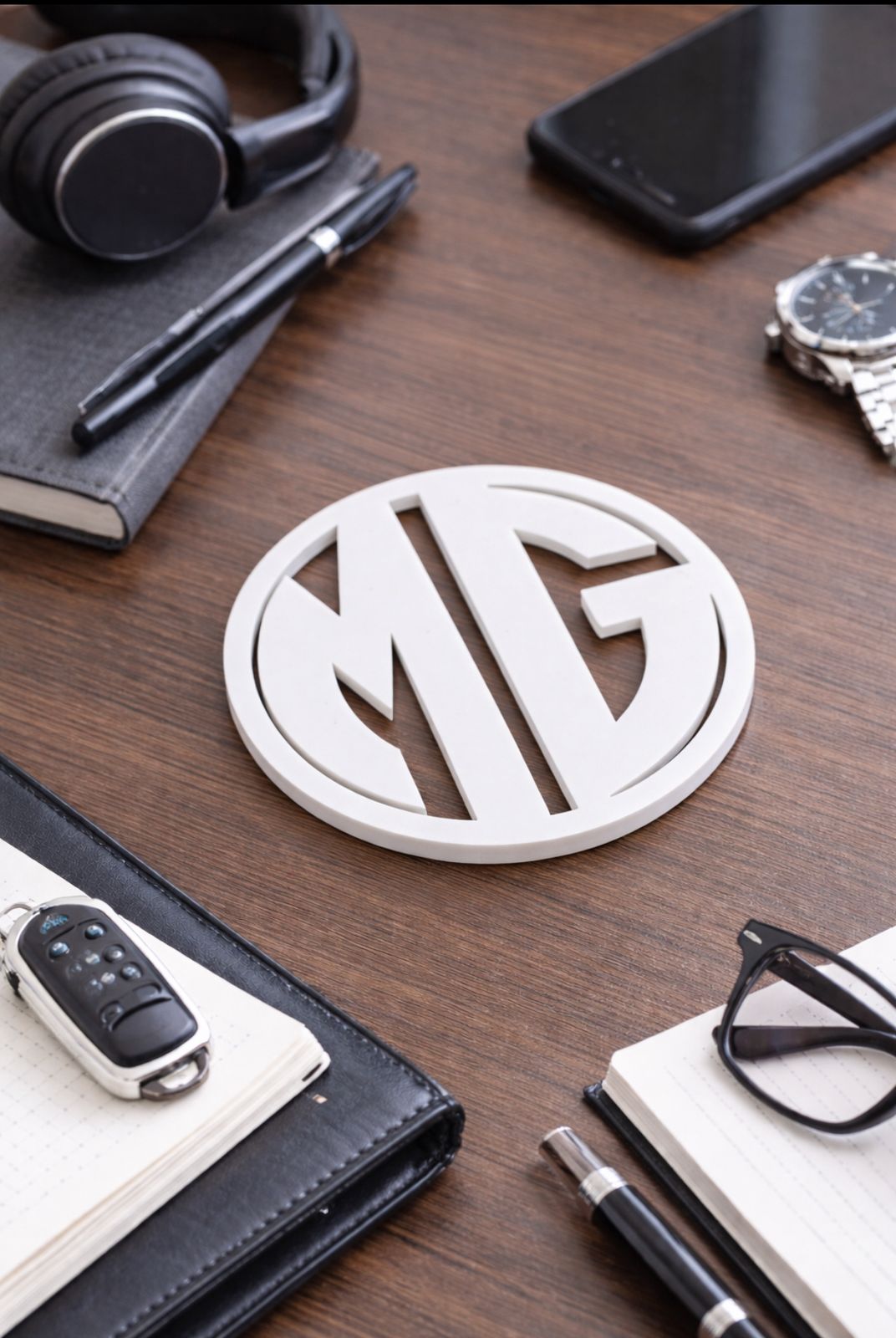 The centered monogram is seamlessly integrated into the circular frame, creating a balanced and sophisticated appearance. The precision laser cutting adds depth and dimension while maintaining a refined, contemporary aesthetic.