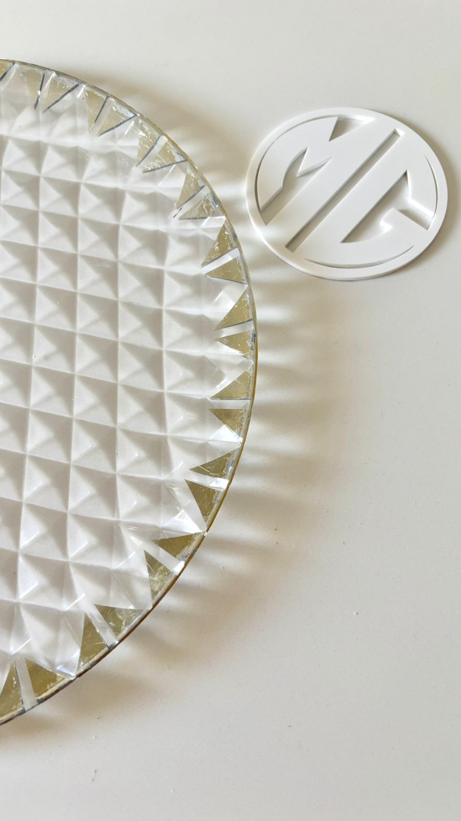 • Design: Laser-cut monogram (open cut detail)